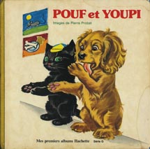 | Pouf et Youpi Hachette 1978 ユピーと白ねこプフの名場面を集めた絵本。前半がユピー、後半がプフのページに 分かれています。 誇り高い白猫として知られるプフ。 そのべべ時代の 意外なしおらしさにびっくり! |